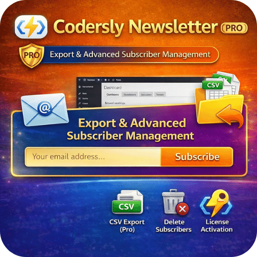 Codersly Newsletter PRO is the official premium add-on for Codersly Newsletter (Free). It unlocks advanced subscriber management tools and adds a dedicated License page inside your WordPress dashboard.